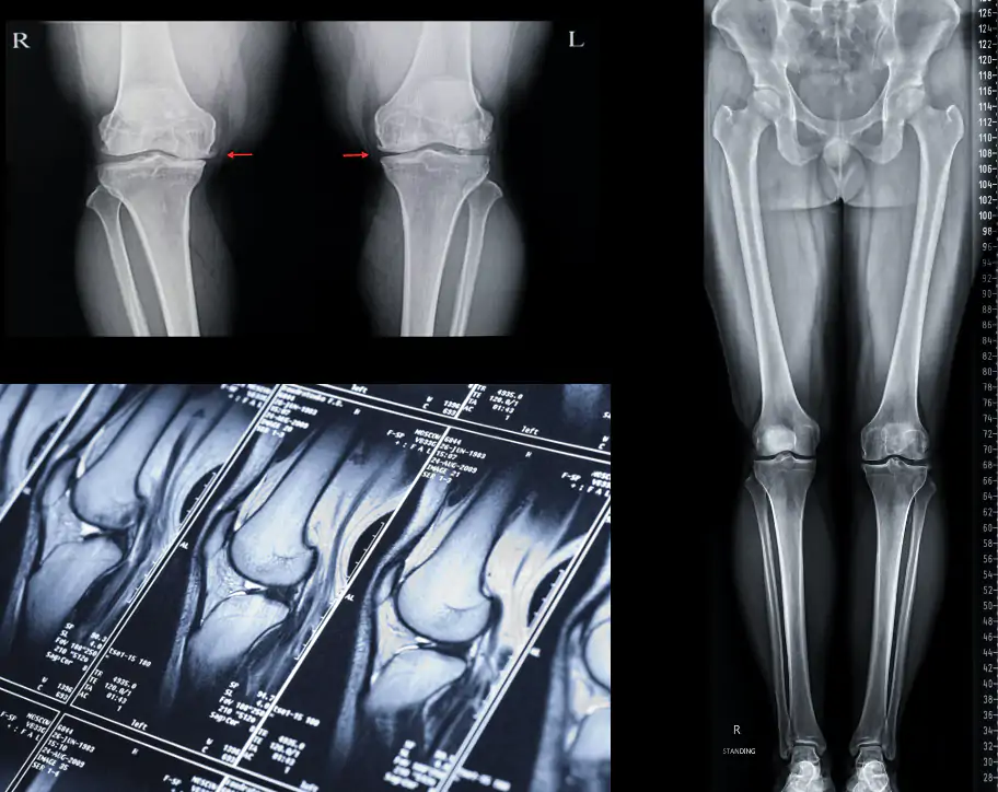 O diagnóstico da artrose de joelho é realizado com uma história clínica e um exame físico adequado. Além disso, o médico ortopedista pode solicitar exames complementares que irão definir melhor a doença e o grau de acometimento da articulação. Os exames mais utilizados para o diagnóstico da osteoartrite de joelho são a radiografia e a ressonância magnética do joelho. Em alguns casos, o joelho pode começar a entortar e uma radiografia panorâmica que mostra os membros inferiores em uma só imagem pode ser necessária para avaliar esse grau de deformidade.