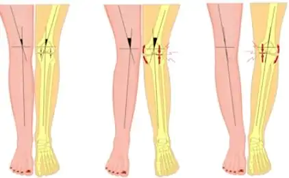 Com a evolução da artrose o joelho pode entortar devido aos desgaste ósseo e instabilidades ligamentares, podendo causar sensação de frouxidão ligamentar, causando piora quando a pessoa anda.