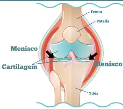 O joelho é uma articulação que possui três ossos: o fêmur, a tíbia e a patela, que é o osso da frente do joelho. Além desses três ossos, na articulação existe a cartilagem articular que cobre e protege os ossos, fazendo com que diminua o atrito entre esses ossos. Existem também dois meniscos em cada joelho, que funciona como um amortecedor diminuindo o impacto na articulação.