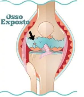 Quando ocorre uma lesão da cartilagem, ocorre um aumento do atrito na articulação, levando a um processo inflamatório e a uma progressão dessa lesão. Além disso, o osso fica exposto causando dor. A artrose do joelho é uma doença de caráter inflamatório e degenerativo, que ocorre de forma progressiva devido à progressão da lesão da cartilagem. E com a progressão da artrose ocorre alterações nos meniscos, ligamentos e ossos, estes últimos com a formação de osteófitos, que são espículas ósseas que acabam causando limitação da mobilidade e deformidade nos joelhos, explicando os sintomas mencionados.