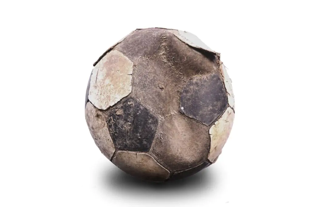 Com o uso, o couro da bola vai se desgastando e rasgando, fazendo com que a câmara de ar comece a sair pelos orifícios do couro até um ponto em que seja possível ver a câmara de ar do lado de fora da bola em um determinado ponto. Isso seria um divertículo na bola!