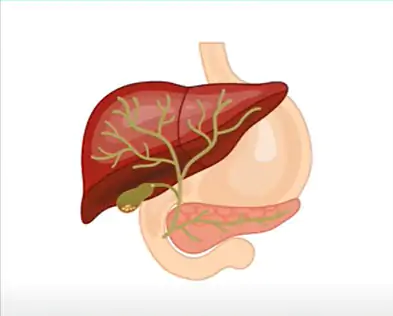 A bile é produzida no fígado a partir da bilirrubina, segue para “canal da bile” até o intestino. O excesso de bile fica armazenado na vesícula biliar, mas se ocorrer alguma obstrução desses canais, o paciente pode ter icterícia.