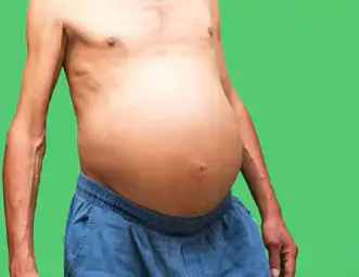 - Aumento da barriga por ascite, também chamada de barriga d’água;