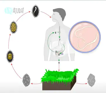 Esses parasitas habitam o intestino das pessoas contaminadas e, na maioria das vezes, são eliminados nas fezes. Se essas fezes não forem tratadas adequadamente, como em áreas sem saneamento básico, elas podem contaminar o solo, a água e os alimentos ao redor. Isso porque, a forma mais comum de contaminação é a ingestão do ovo, ou o próprio verme através da água contaminada ou por alimentos contaminados com a água ou solo.